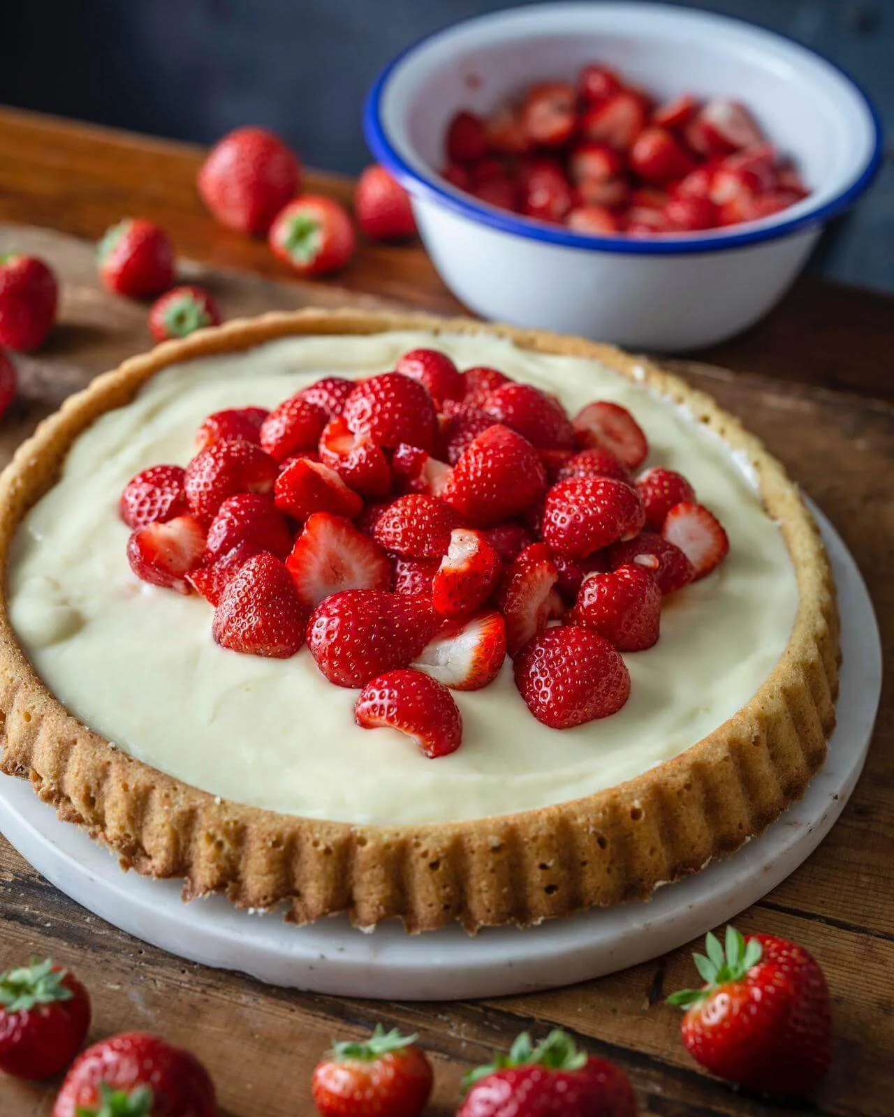 Erdbeerkuchen mit Vanillepudding