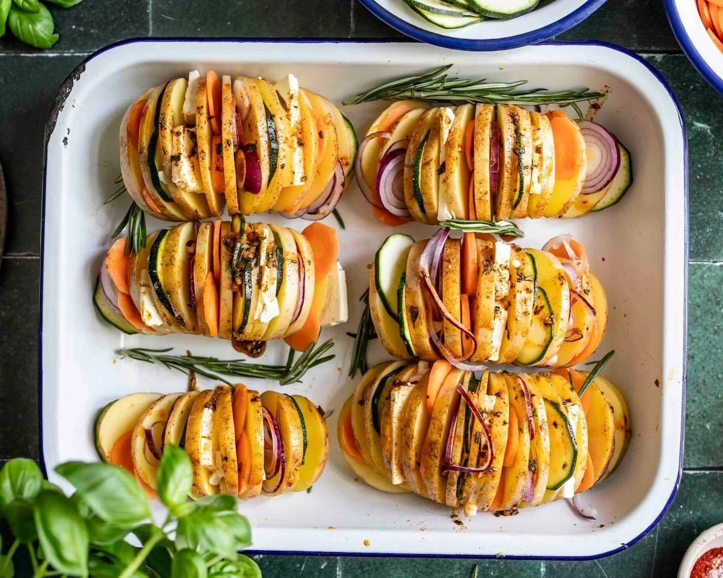 Ofenkartoffeln gefüllt mit Gemüse - Hasselback Kartoffeln