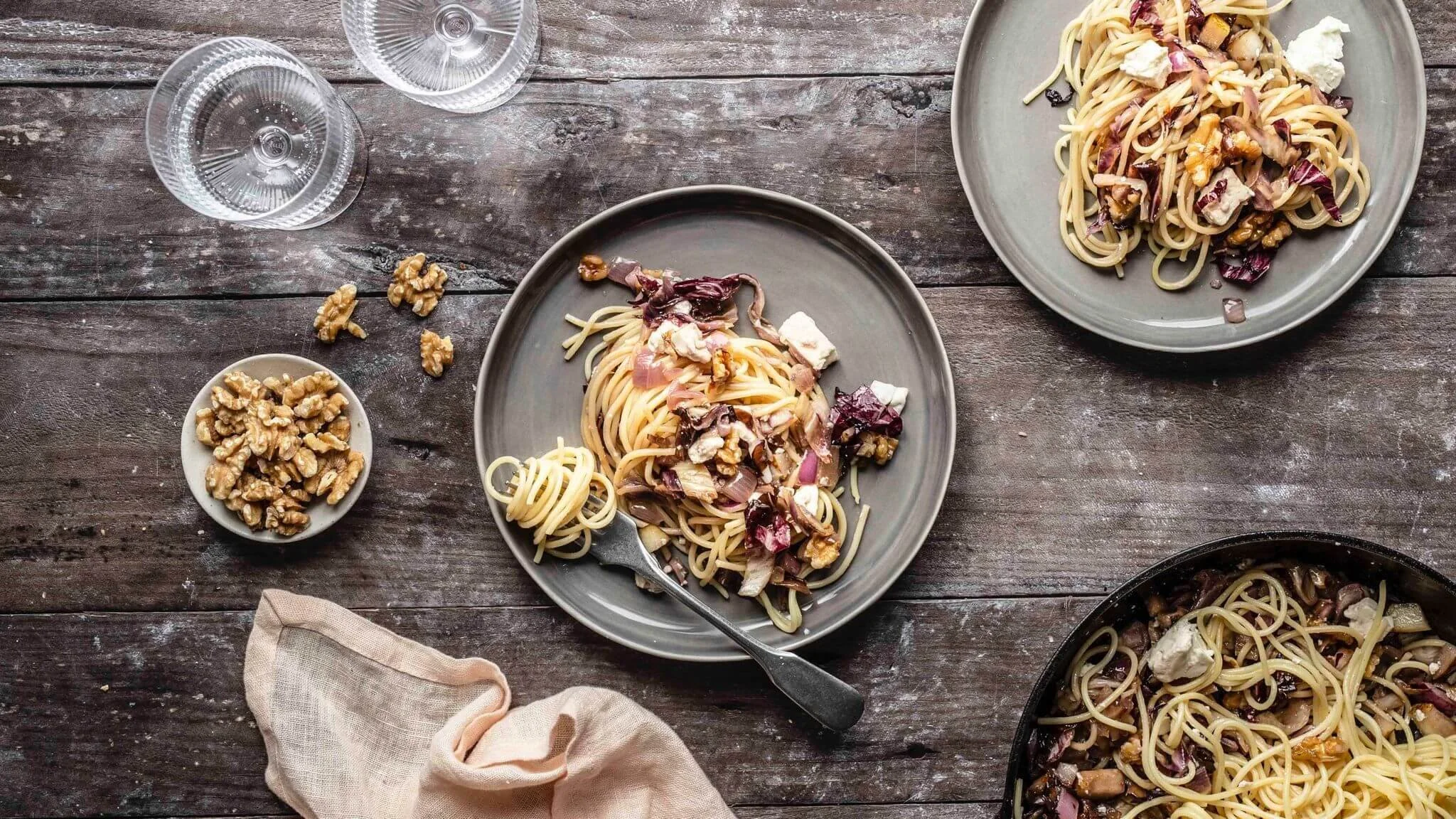 Pasta mit Radicchio, Ziegenkäse und Walnüssen