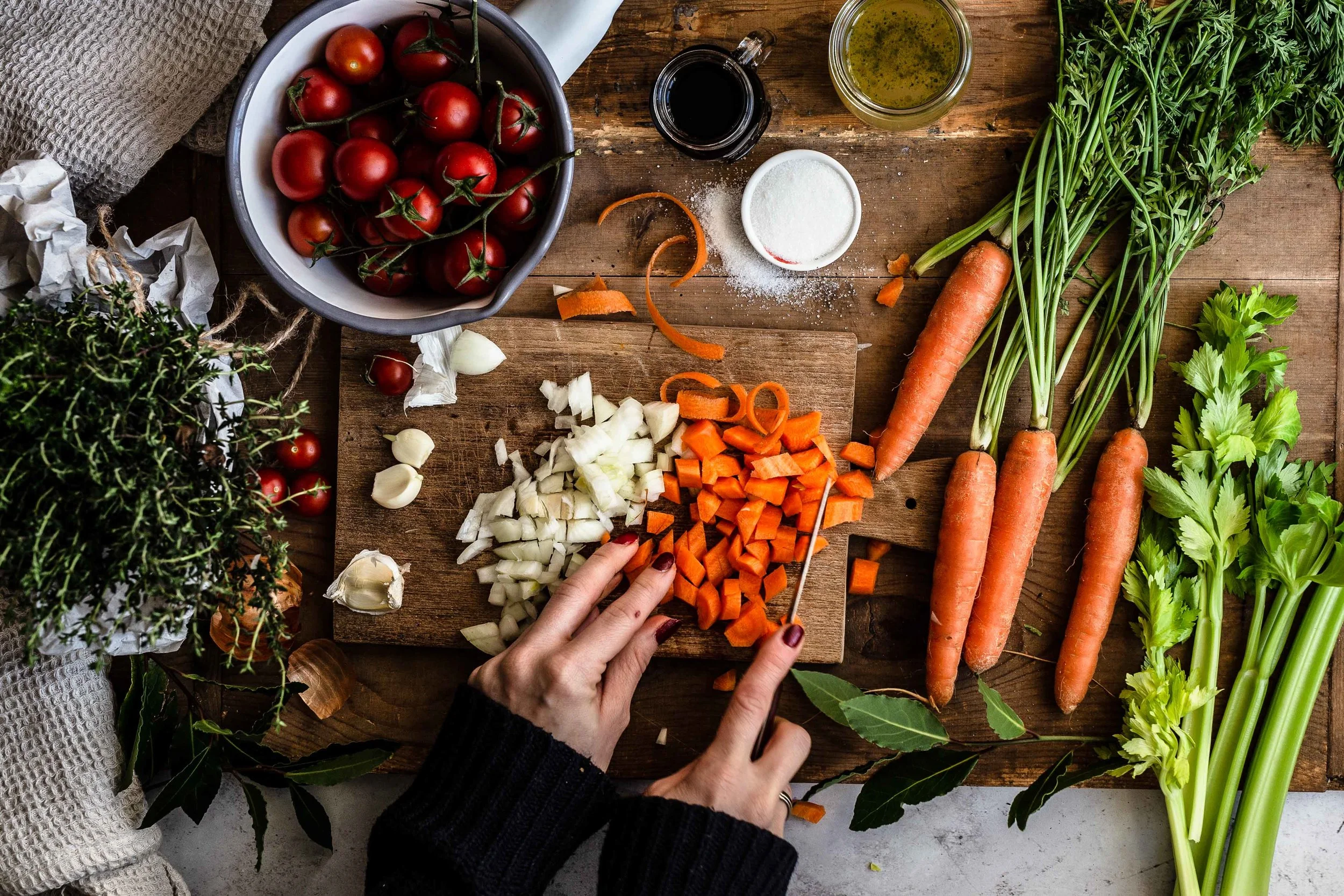Die Zutaten für die Bolognese Sauce liegen bereit…mit dem Schnippeln kann gestartet werden.